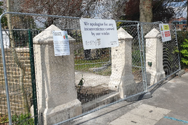 Fences remain around the cemetery gateway Picture: Chris Longhurst