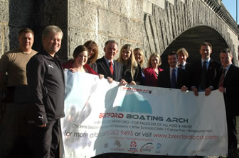 Mary Macleod with Jeremy Hunt MP, Shadow Secretary for Culture, Media and Sport at the Kew Bridge Boating Arch with the Brentford FC Community Sports Trust team