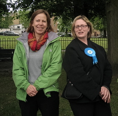 Ruth Cadbury, Brentford Labour Ward Councillor, and Mary Macleod, Conservative Parliamentary Candidate, share a smile.