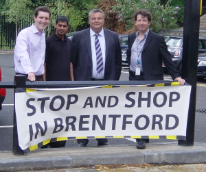 Councillors Andrew Dakers, Paul Fisher, Jon Hardy and Matt Harmer who collaborated closely with local traders to deliver car park for Brentford High Street are pleased that after three years of campaigning work has finally been completed on a new shoppers car park on Brentford High Street – free for the first hour (30p for 2hrs, 60p for 3hrs). The successful campaign for the car park led since 2006 by the chair of the Brentford High Street Steering Group, Cllr Dakers, secured cross-party support that enabled it to be opened on a temporary basis in 2007. Since then, the low-cost and well located car park has received much positive feedback from local businesses and local shoppers.  The car park was first suggested in the early 1990s by the Brentford Regeneration Partnership but was never implemented.