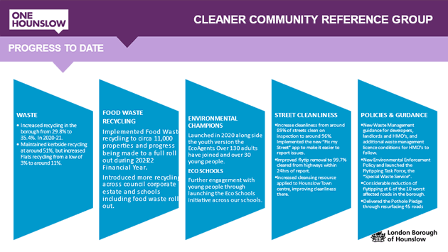 As anticipated in last week’s thrilling instalment, on Thursday afternoon I had the Cleaner, Greener Community Reference Group. We saw slides which recapped progress on the many initiatives we have taken under Cleaner, Greener.