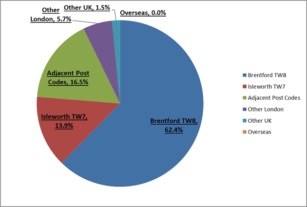 Breakdown of Location of BrentfordTW8.com Newsletter Subscribers