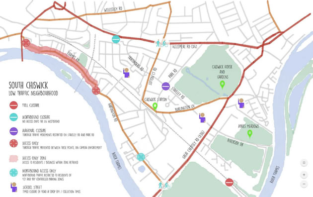The measures that are to be introduced include making Thames Road access only controlled by automatic number plate recognition cameras (ANPR), restricting access to the A4 from Havard Hill, introducing a range of school streets which will restrict vehicle access to local schools during drop off and pick up times, a ‘diagonal road closure’ at the Staveley Road/Park Road junction. Northbound traffic on Hartington Road is to be restricted to residents only.