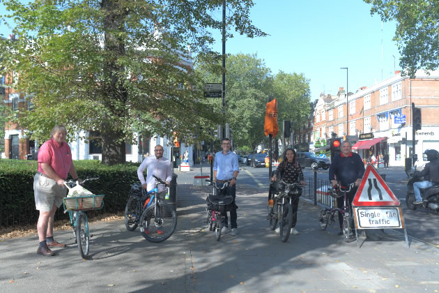 She adds that her heart rate rose when she saw the photo of Will Norman of TfL’s Walking and Cycling Commissioner and Steve Curran, the leader of Hounslow Council, posing with bikes on the morning that road works began on the temporary cycle lane on Chiswick High Road. She described it as ‘like looking at a photo of a proud and un-cowed illegal elephant hunter posing with his trophy’.