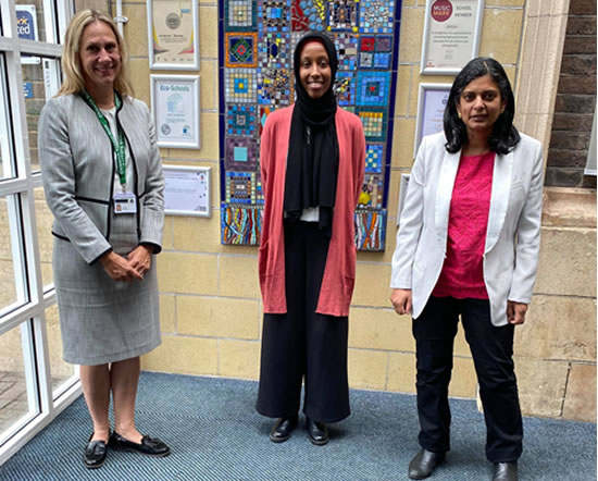 Chiswick School head Laura Ellener, Maimuna Hassan and Rupa Huq MP