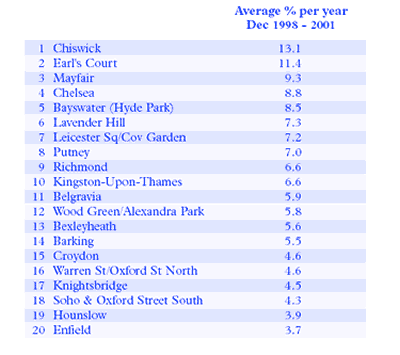 The figures were revealed in a report by property consultant Donaldson's which highlighted how areas like Chiswick are catching up with the West End in terms of cost.