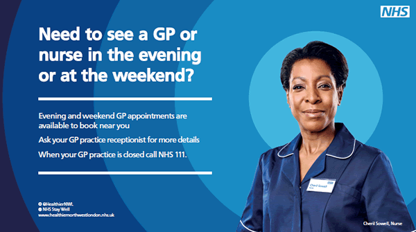 Any patient registered with a Hounslow GP can access these new appointments, which can be booked at your local GP practice or by calling NHS 111 when your GP practice is closed.