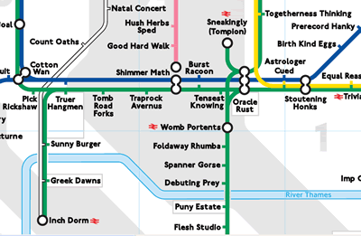 A creative cartographer has renamed the entire tube networkusing anagrams of the original names turning Chiswick Park into Pick Rickshaw and Turnham Green into Truer Hangmen.