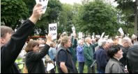 Over 1,000 people turned out on Haven Green as two rallies sought to persuade West Londoners about the benefits or otherwise of the tram.