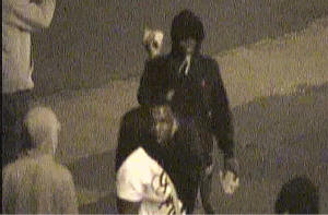 This clip is from close to the scene and after the attack. In this clip his jumper is over his shoulders and his t-shirt has writing on the front