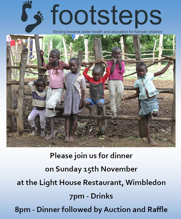 Tickets £65 Cheques payable to Footsteps for Africa or by Bank transfer