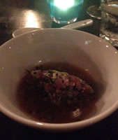 The amuse bouche was a tuna consommé with tartar and accompaniments - a generous portion of tuna tartar sitting in a warm broth a surprising but successful combination and absolutely delicious!