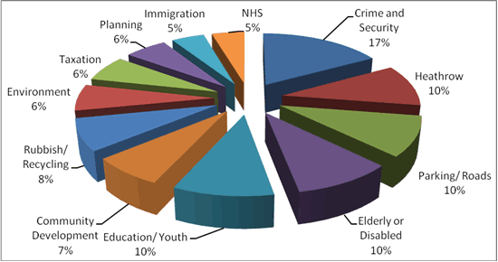 The survey, conducted by Mary Macleod, the Conservative candidate for Brentford and Isleworth, showed that fears over the expansion of Heathrow also ranked highly in the results.