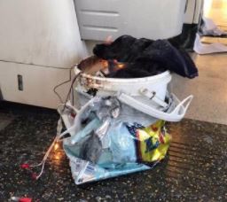 Pictures have emerged of a white bucket containing wires within a Lidl supermarket bag. Police have said this device did not fully detonate, but it sent a fireball through the carriage when it did explode.