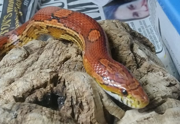 Emily carefully contained the lively corn snake in a secure carrier, and took him to RSPCA Putney Animal Hospital, where he was checked over. Luckily, he appeared to be in good health.
