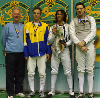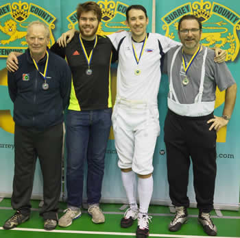 Sabre L-R Jim Hamilton Wimbledon Bronze, Clive Hogan Guildford bronze, Steve Pope UA gold and Emmanuel Therond Kingston silver. Pic credit: Tim Schofield