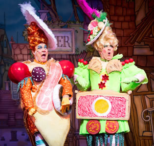Dallas was not the only TV theme to get a mention, as the Ugly Sisters were clearly named after X Factor judges Cheryl and Mel B. The two Matthews were as large as life as you can imagine and looked to be enjoying their performances. Seeing tiny Wayne Sleep, the height of their padded chests, sandwiched between them was a striking image from the show!