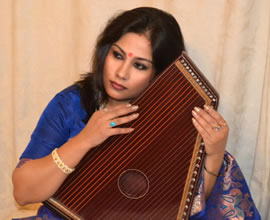 Classical vocalist Chandra Chakraborty playing the Shur Mandal