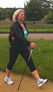 She can often be found striding out on Wimbledon Common, with her Nordic poles (see right), giving tuition to those keen to learn more about this growing form of exercise.