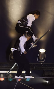 Ernest and Roger Santus are members of some of France’s most illustrious circus families. Taking on almost every sort of skill and presentation, from hand-balancing and trapeze to unicycling, juggling, and acrobatics, they’ve performed across Europe and in Asia, and they’ve won top prizes at the prestigious Monte Carlo Circus Festival.