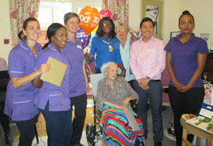 Wimbledon care home resident Hazel Honeyburne has recently celebrated her 100th birthday, with a party which included a visit from Marsie Skeete, Mayor of Merton.