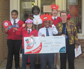 Pelham Primary school in Wimbledon is the winner of Merton's Mega Recycle community award, receiving a £5,000 cheque from Mayor of Merton Councillor Agatha Akyigyina.