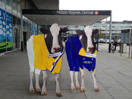 Dave said: "I was looking for creative and non violent ways of making a protest and a small group of us got together and created a couple of life-sized cardboard cows. They are painted with an AFCW kit as a tongue poke to the concrete cows in Milton Keynes and will be auctioned after the 'game' for charity. We hope it will bring a few smiles."