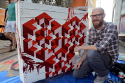 The artists involved are leaders in the arts scene creating individual pieces and bold artwork including bling Rhinos, shapes that are impossible and abstract images. Stu Nova is pictued above with his painted bench.
