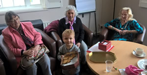 But the toddler was not surrounded by other children at a rowdy party, she was delighted to be tucking into cake with a group of pensioners.